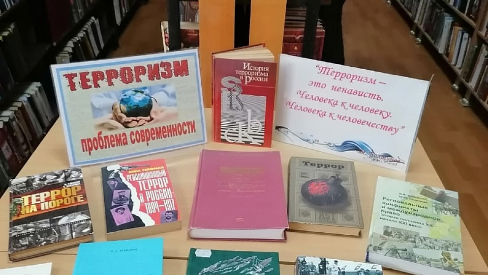 В рамках Комплексного плана противодействия идеологии терроризма в РФ библиотекари проводят для читателей обзор у книжной выставки «Терроризм – проблема современности».
