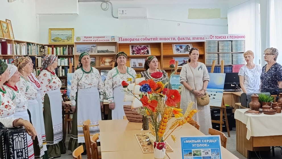 Открыл выставку народный фольклорно- этнографический коллектив «Околица» под руководством Кочановой А.И. Свое авторское стихотворение «Приморско-Ахтарск» представила Ирина Новицкая - специалист отдела комплектования и обработки литературы.
