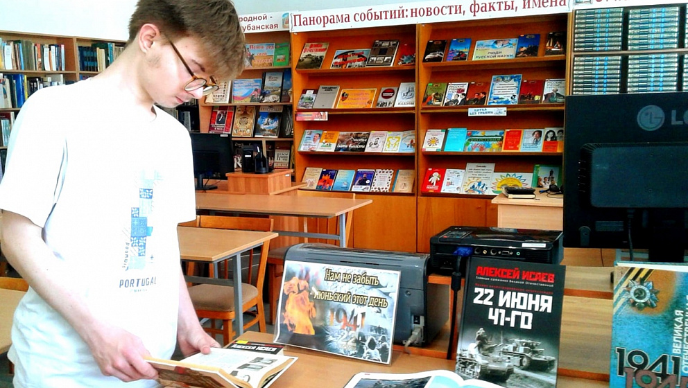 Ко Дню памяти и скорби в читальном зале Центральной районной библиотеки оформлена тематическая книжная выставка «Нам не забыть июньский этот день».