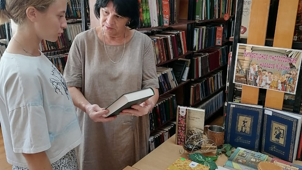 В рамках 10-летия языков коренных народов в библиотеке представлен краеведческий альманах «Народы России – одна семья». У красочно оформленной выставки «Литературное многообразие народов Кубани» специалисты проводят беседы с читателями и представляют тематическую литературу.
