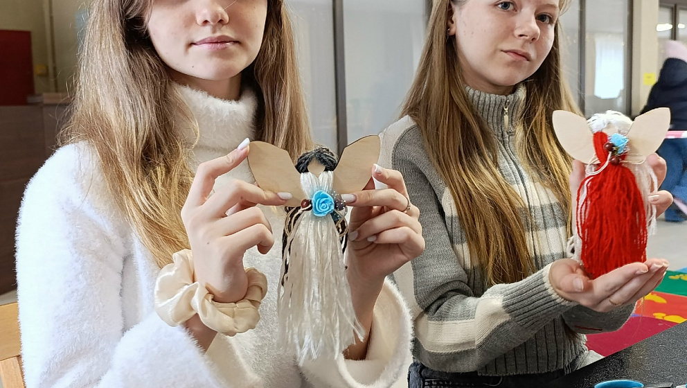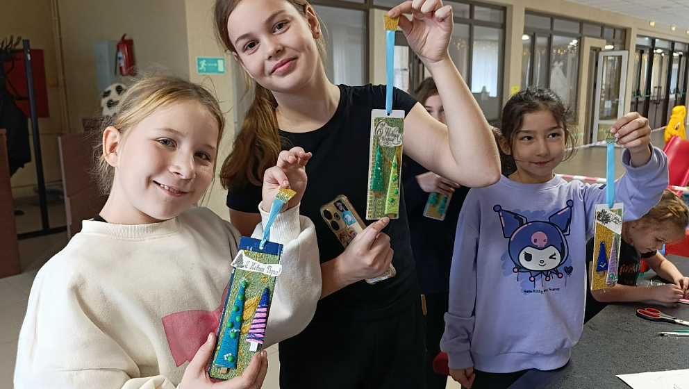 Ребята с энтузиазмом погрузились в работу: из фетра, ниток и бусин рождались забавные лошадки, нарядные ёлочки и рождественские ангелы-хранители. Юные участники активно освоили технику скрапбукинг, создавая новогодние книжные закладки.