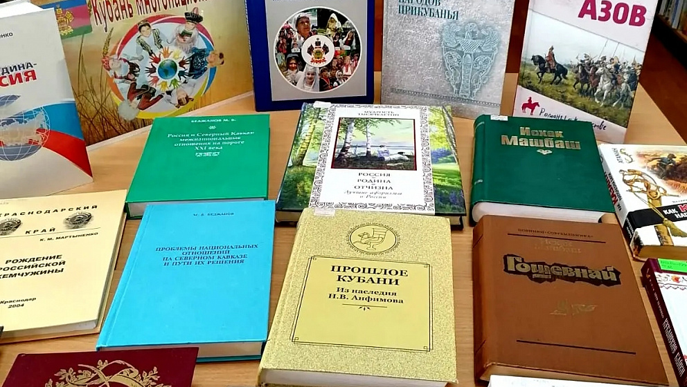 В эти дни на абонементе открыта книжная выставка «Кубань многонациональная», у которой библиотекари проводят с читателями дайджест «Одной судьбой, одной дорогой», способствуя более углубленному знакомству с историей и культурой народов, проживающих в крае, межнациональными отношениями и развитием национальных культур.