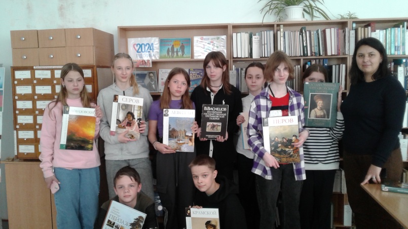 Ребята с удовольствием рассматривали репродукции наиболее известных картин выдающихся мастеров русской живописи из собрания Третьяковской галереи: К. Брюллова, В. Перова и И. Шишкина, И. Репина, В. Васнецова, А. Саврасова, С Герасимова, А.Рублева и многих других художников, посмотрели небольшие видеосюжеты о знаменитых картинах и о самих коллекционерах.