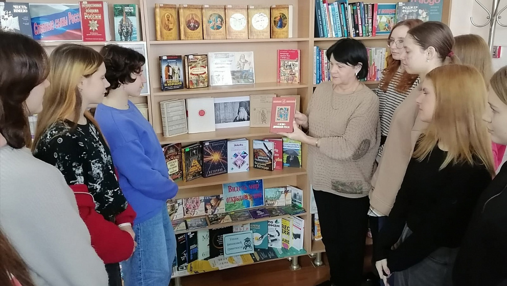 Учащихся познакомили с православной литературой, представленной на выставке: книгами В. Мешкова «Праздники в православии», В. Крупина «Русские святые», В. Артемова «Православная молитва», А. Н. Казакевича «Православные иконы», Н. Черных «Подвижницы. Святые женщины нашего времени» и другими.