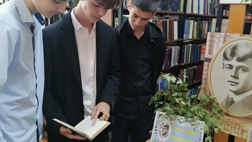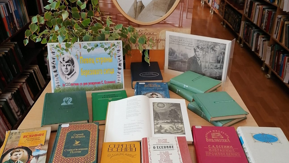 Ко дню рождения поэта, с 3 октября на абонементе представлена красочно оформленная выставка-диалог «Певец страны березового ситца». Россыпь книг украшают ветви березы – одного из любимых символов есенинской лирики.