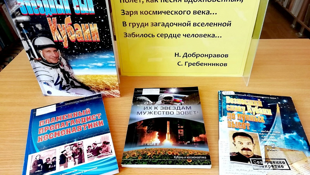 Ко Дню космонавтики в Приморско-Ахтарской районной библиотеке оформлена выставка-обзор, на которой представлены книги о знаменитых покорителях космоса, об истории развития космической отрасли, в том числе и уникальная автобиография, написанная матерью Юрия Гагарина. Эти издания будут интересны как взрослым, так и молодёжи.