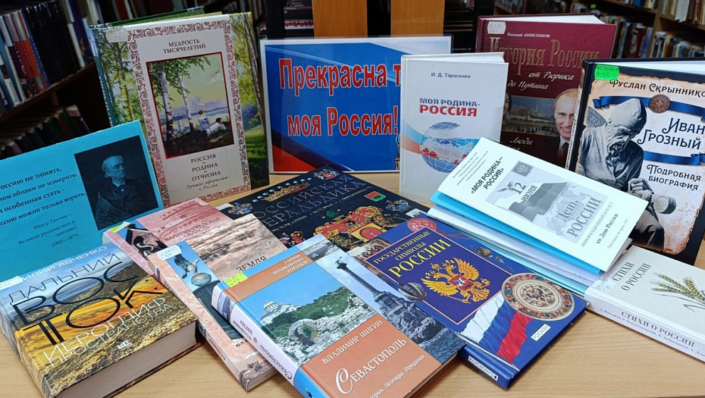 Ко Дню России на абонементе Центральной районной библиотеки оформлена книжная выставка «Прекрасна ты, моя Россия!». На выставке представлены издания по истории и географии, о культуре и этнографии нашей страны; книги о государственных символах, традициях и праздниках России, о знаменитых россиянах, о величайших памятниках зодчества и о многом другом: