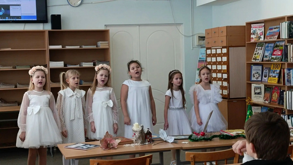 20 января в читальном зале библиотеки состоялась встреча любителей музыки «Прикоснись душой к Рождеству» с участием вокально-эстрадной студии «Музыкальная капель» МАОУ ДО Дом творчества «Родничок» под руководством преподавателя Елены Васильевны Виндюриной.