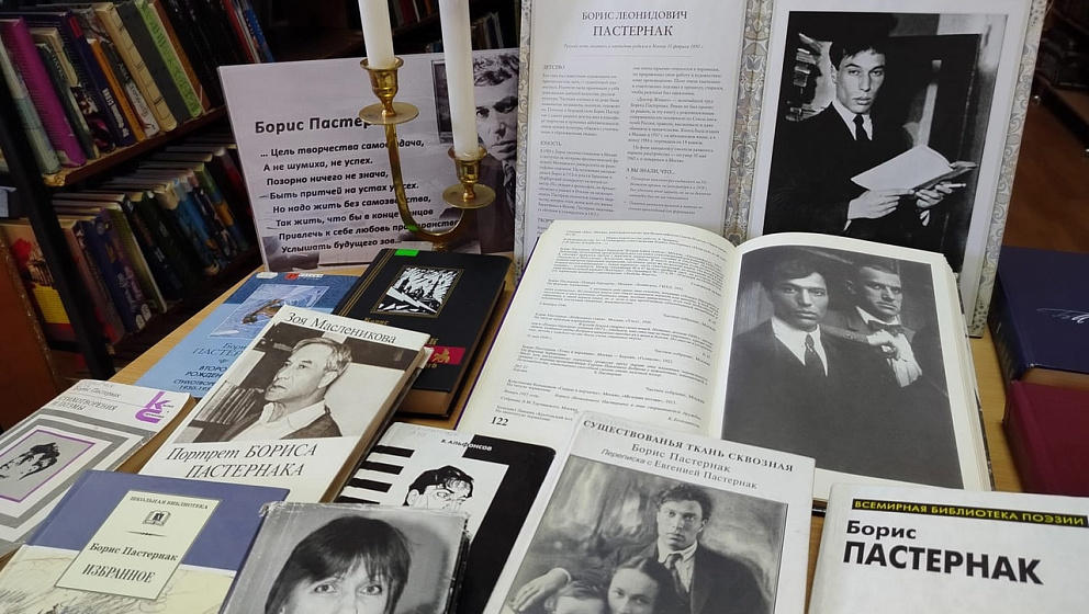 С 6 февраля в библиотеке работает выставка одного автора «С Россией связан жизнью». На выставке для читателей библиотеки представлены собрание сочинений Пастернака в 4-х томах, сборники стихотворений, поэмы, повести, проза, драмы, эссе, переводы.