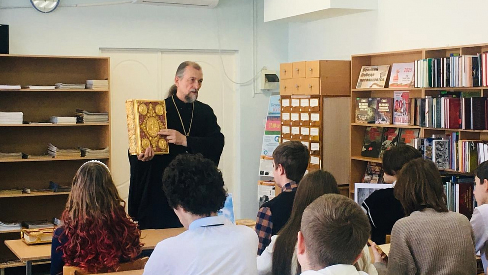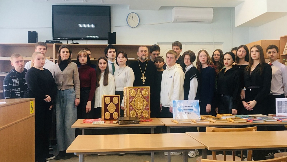 Протоиерей Иоанн Феер беседовал со студентами техникума не только о православной книге в ее узком понимании: о Священном Писании, святоотеческих творениях, богословской и церковно-исторической литературе, но и о литературе художественной, которая учит человека, как жить, помогая ему сохранить традиции и развиваться как личности.