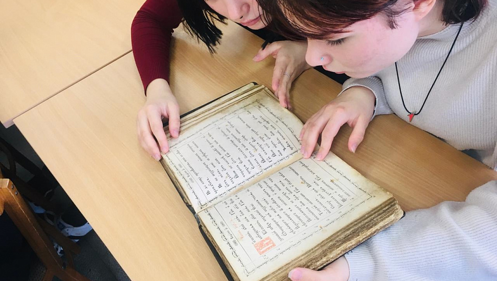 Во время встречи у ребят появилась уникальная возможность поближе рассмотреть старинные богослужебные книги.
