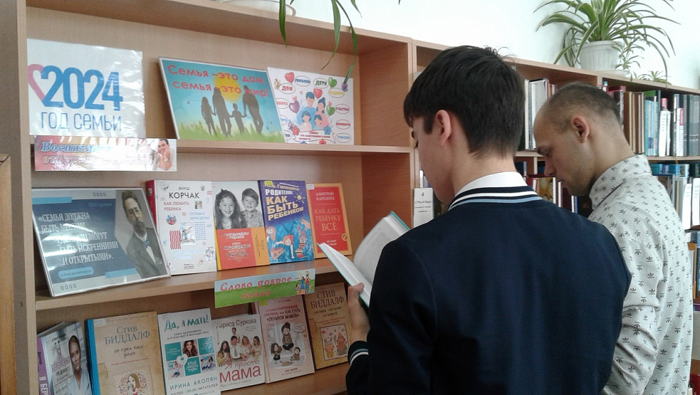 Книжная выставка привлекает внимание как молодёжи, так и семейных пар. Большой выбор книг о воспитании детей с советами и рекомендациями вызвал неподдельный интерес у дружной семьи Ращепкиных. Андрей и Анастасия - многодетные родители, воспитывающие четверых детей в возрасте от 3 до 14 лет. Со старшими детьми - школьниками Александром и Софией - они передали в дар библиотеке много художественной литературы. Нашими читателями они стали совсем недавно, ведь у многодетных родителей практически все время занято детьми, но увидев огромное разнообразие библиотечного фонда, особенно книг о семейных ценностях, приняли решение сделать посещение библиотеки доброй семейной традицией.