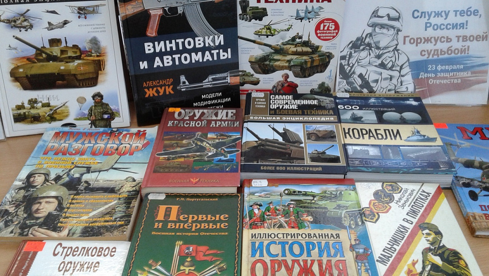 Красочно иллюстрированные книги, представленные на выставке, познакомят читателей с историей военной техники и оружия от самого простейшего до современного военного оснащения.