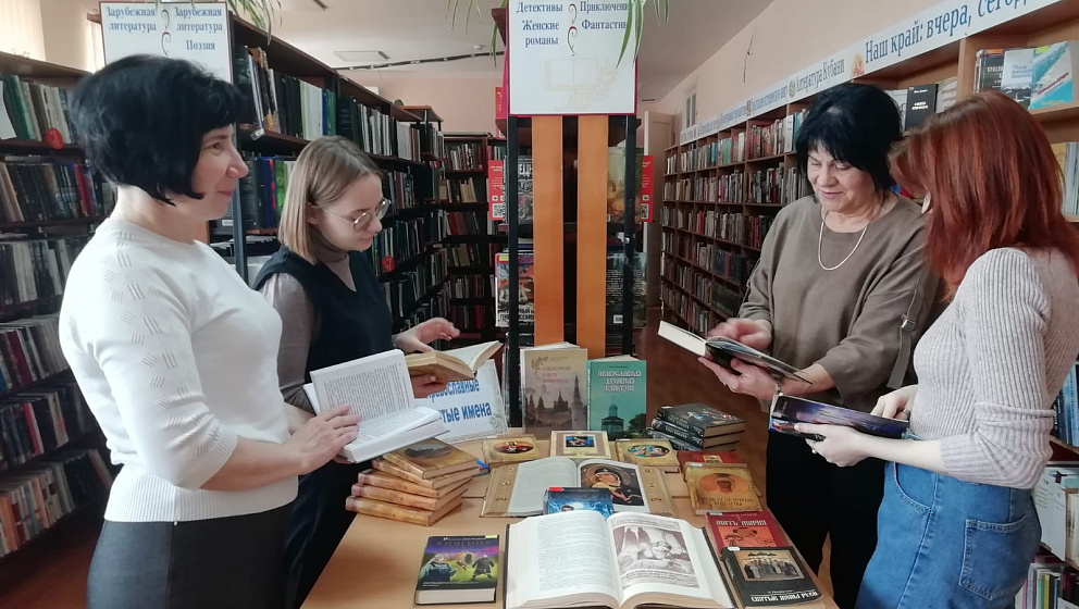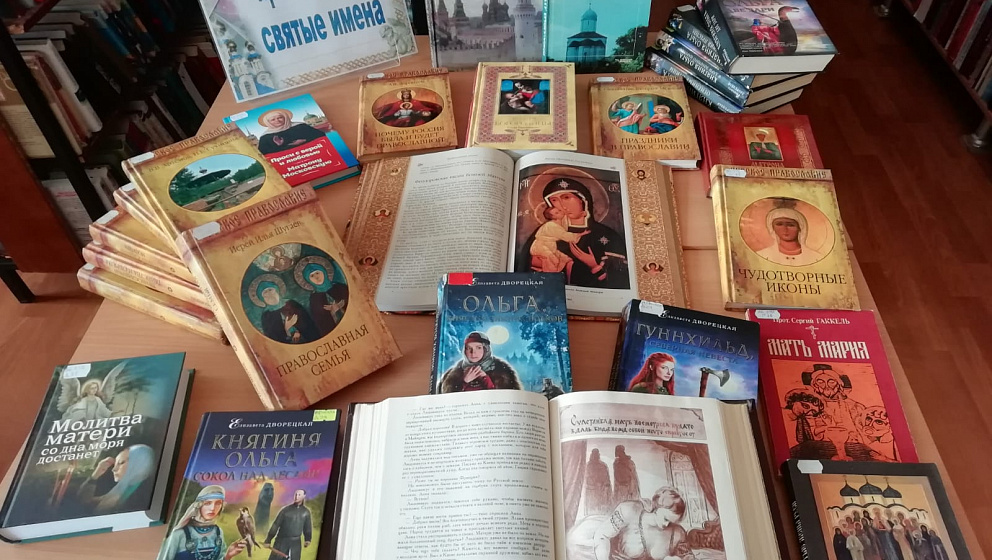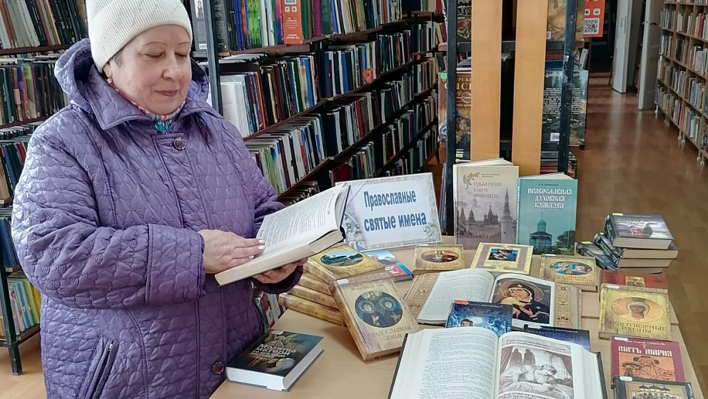 В рамках Дня православной книги в библиотеке организована выставка православных изданий «Православные святые имена». Проводя обзор выставки, библиотекари стараются привлечь внимания читателей к проблеме духовно-нравственного воспитания молодежи, стремятся раскрыть нравственное и художественное наследие русского народа, рассказать о значении православных книг в современном мире.