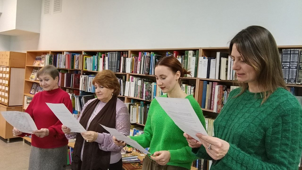 Руководитель студии Анастасия Петракова продолжает удивлять и украшать своим талантом концертные программы РДК и мероприятия библиотеки. С большим удовольствием все присутствующие слушали и подпевали «зимние» песни и романсы: «Татьянин день», «Бубенцы», «В лунном сиянье», вальс «Анастасия» – и словно переносились в другую эпоху, ведь такова сила воздействия настоящего искусства.