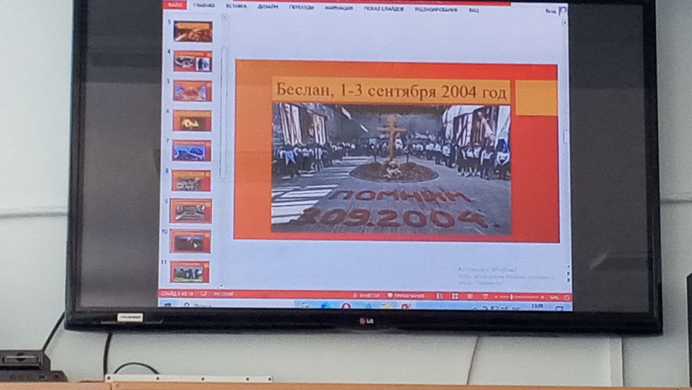 Школьникам рассказали о страшных событиях, произошедших в городе Беслане с 1 по 3 сентября 2004 года и о крупнейших терактах в истории современной России. Ребята узнали, что такое терроризм, рассмотрели его виды, а также поговорили о том, какие цели ставят перед собой террористы.