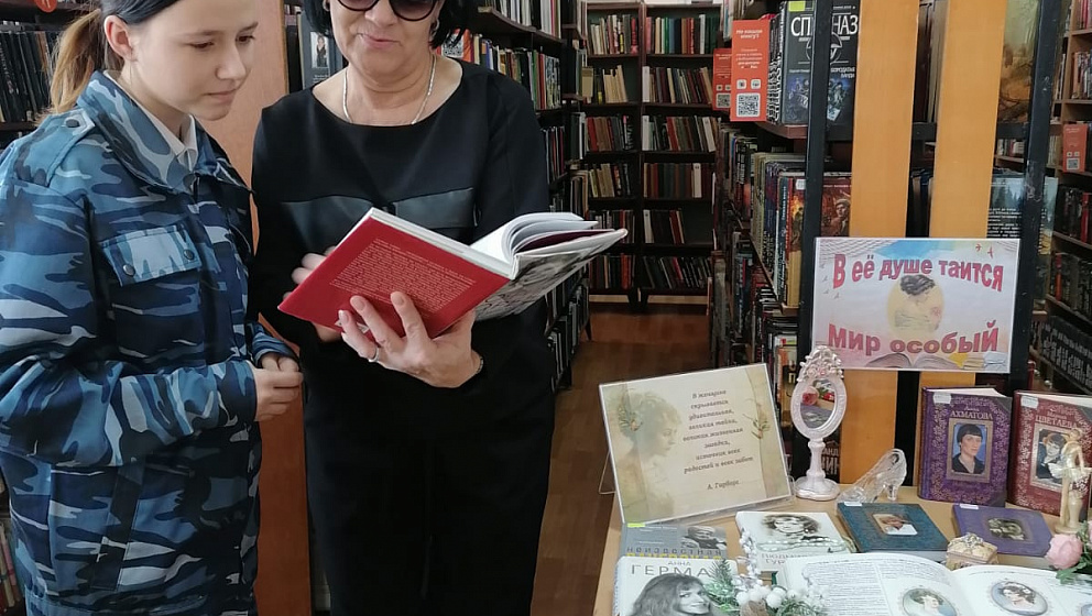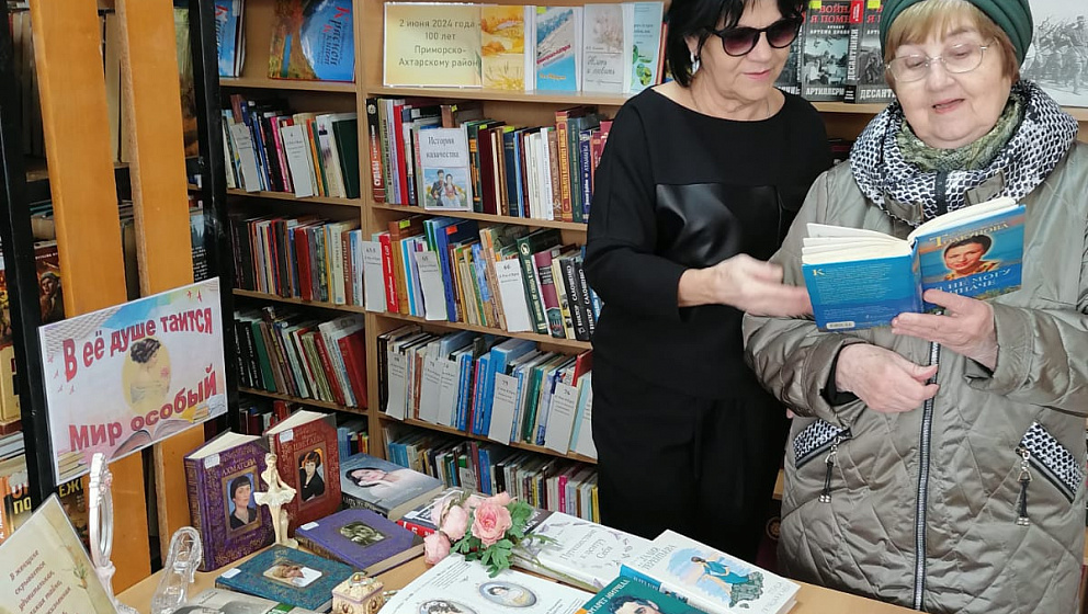 Всех женщин, пришедших в эти дни в библиотеку, мы приглашаем к общению с книгой в руках возле праздничной выставки «В ее душе таится мир особый».