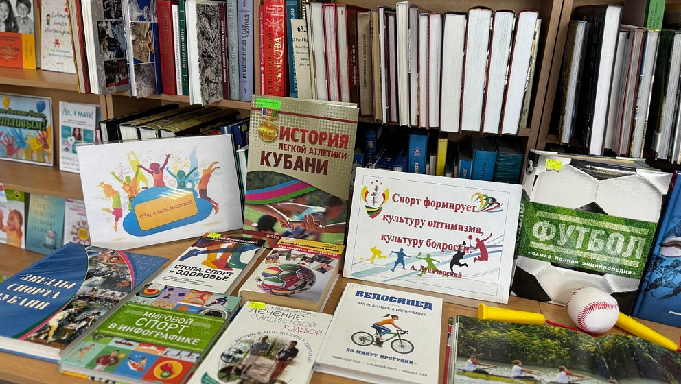 На выставке представлены книги: Е.Тованчева «Кубань спортивная», «Звезды спорта Кубани», «История легкой атлетики Кубани:1912-2012, цифры, факты», энциклопедия «Спорт.Мировые достижения», Ю.В. Попова «Жизнь выдающихся людей. Знаменитые спортсмены», Д.Татарского «Мировой спорт в инфографике», Д. Голдблатт «Футбол: самая полная энциклопедия».
