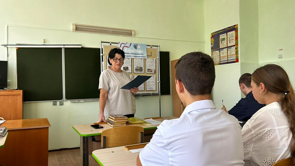 Школьникам напомнили, сколько мирных людей погибли от рук террористов. Незаживающей раной остаются события в Беслане 1 сентября 2004 года, когда вооруженные бандиты удерживали в заложниках в здании школы более 1000 человек, половину которых составляли дети.