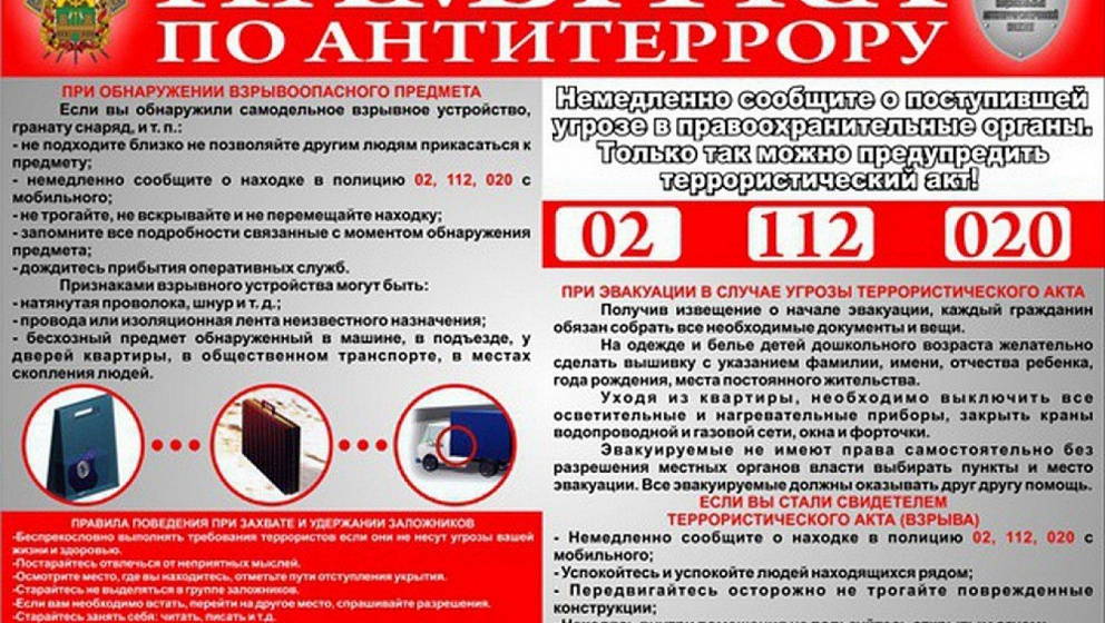 - Случайно узнав о готовящемся теракте, немедленно сообщите об этом в правоохранительные органы.