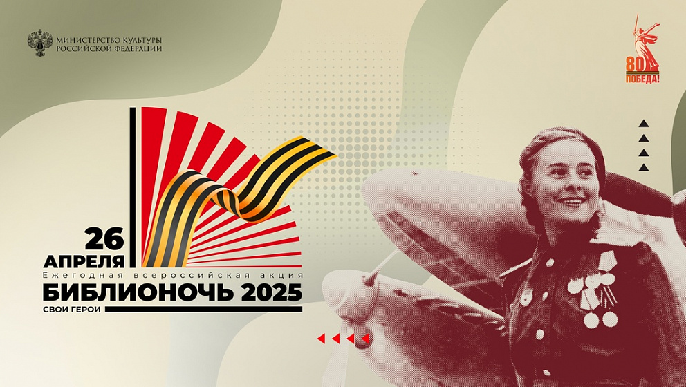Дорогие друзья! 26 апреля с 16.00 до 23.00 часов приглашаем вас принять участие во Всероссийской акции «Библионочь-2025», посвящённой 80-летию Победы в Великой Отечественной войне и Году Защитника Отечества!