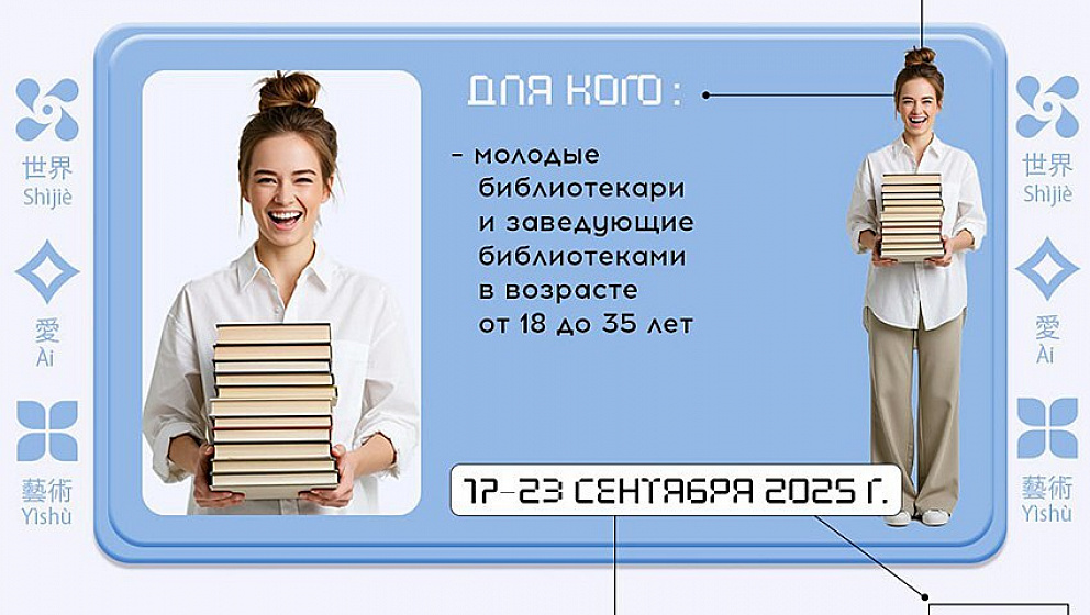 Книги — ваша страсть? Тогда добро пожаловать на арт-школу современных библиотек, где участники обменяются опытом создания библиотечных пространств для молодёжи и разработают идеи мероприятий для взаимодействия культур России и Китая.