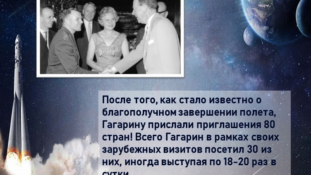 Первый летчик-космонавт стал знаменитым не только у себя на родине, с «Миссией мира» он объездил 30 стран, везде его встречали как героя.