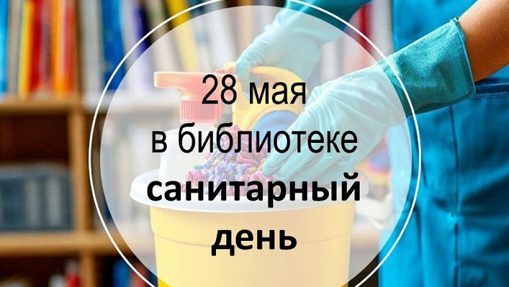Обратите внимание: 28 мая - санитарный день! В этот день мы не обслуживаем читателей, а проводим уборку и подготовку библиотечного пространства для вашего комфортного чтения. Ждем вас 29 мая с 10:00 до 18:00, пятница - выходной.
