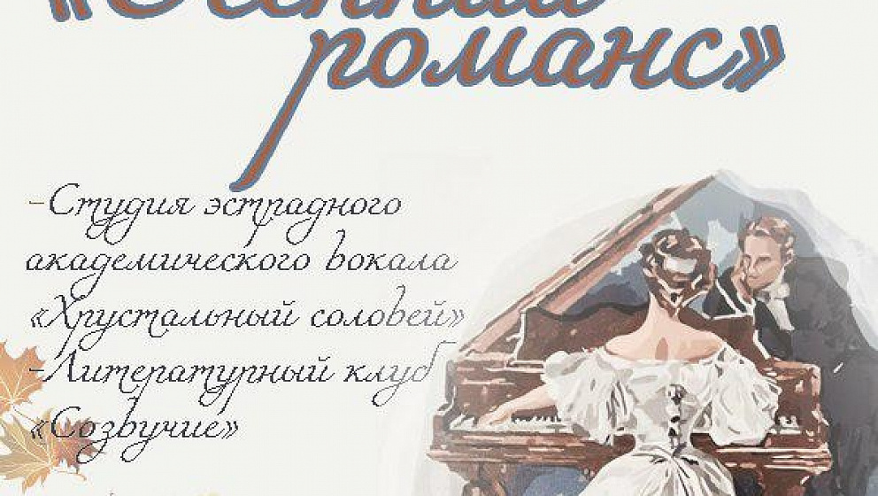 Все это вы получите и напитаетесь прекрасной музыкой и поэзией в пятницу, 3 октября, на вечере "Осенний романс".
