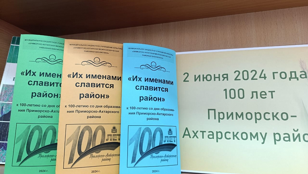 К 100-летию со дня образования района Приморско-Ахтарская районная библиотека подготовила буклет "Их именами славится район" о людях, имена которых необходимо знать и гордиться подрастающему поколению.