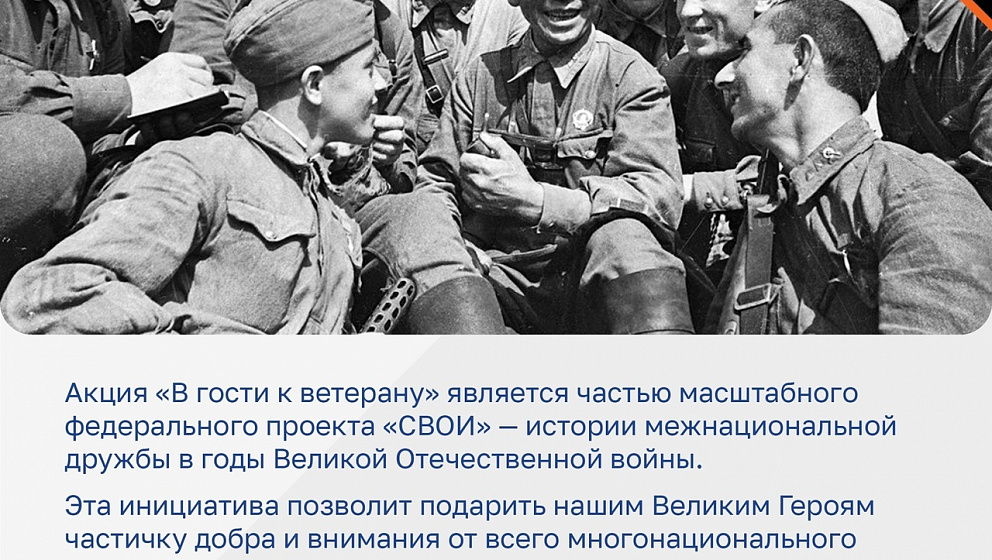 В рамках 80-й годовщины Победы в Великой Отечественной войне Дом народов России при поддержке Федерального агентства по делам национальностей реализует проект «СВОИ». Он повествует о межнациональной дружбе в годы Великой Отечественной войны и в период Специальной военной операции.
