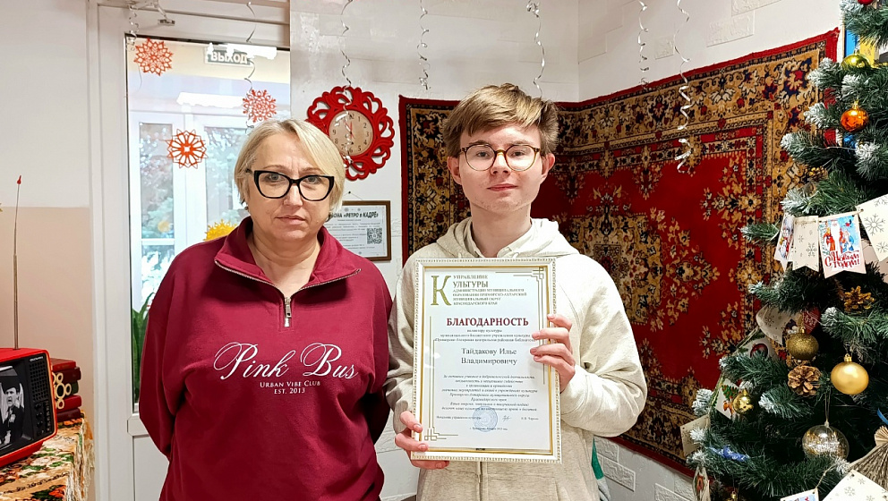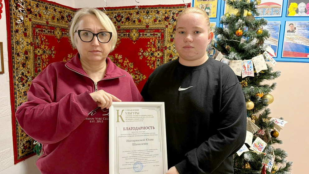 Сегодня в Центральной районной библиотеке состоялось торжественное вручение благодарностей нашим юным волонтёрам — Илье Тайдакову и Юлии Иштиряковой, которые не смогли присутствовать на районном празднике.