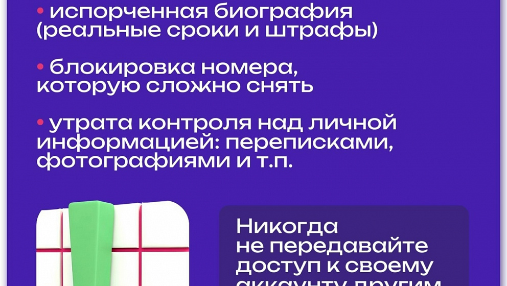 Мошенники заманивают подростков лёгким заработком, но на деле используют страницу, чтобы обманывать твоих друзей и родных. Подробнее — в карточках