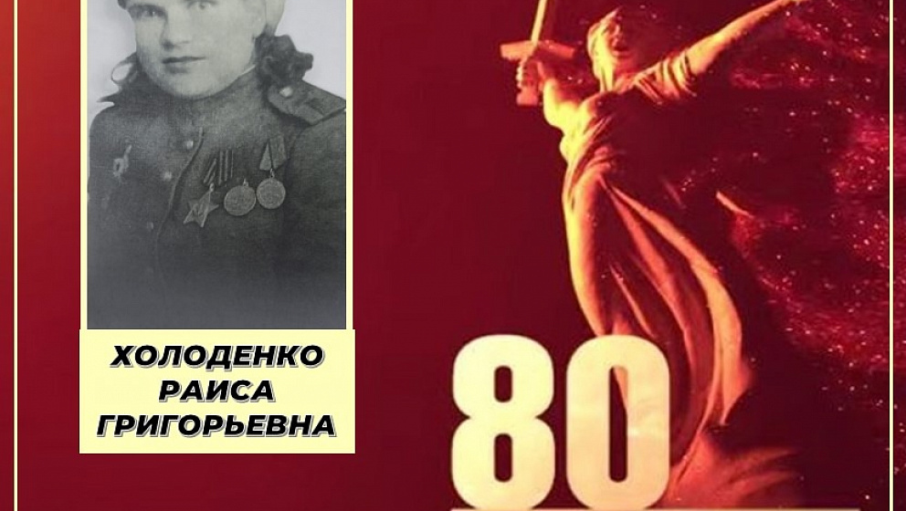 Раиса Холоденко - участница боевых действий на Малой земле, в Новороссийске, Туапсе. Воевала с 5 декабря 1941 года. В 1944 году после тяжелой контузии сбежала из госпиталя на передовую. Попала Раиса в роту автоматчиков 226-й дважды краснознаменной дивизии. С ними дошла до Карпатов.